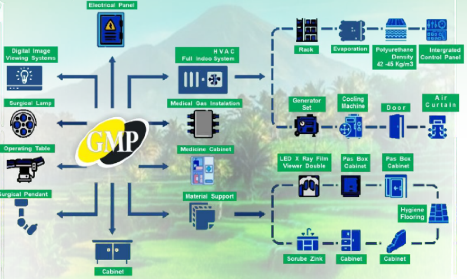 Diagram Sistem MOT Supplier PT. Daun Hijau NusindoPanel kontrol pusat memungkinkan personel medis untuk mengatur parameter penting seperti suhu, kelembapan, pencahayaan, dan sistem ventilasi dari satu lokasi sentral. Ini memudahkan pengaturan dan pengawasan lingkungan operasi secara efisien.